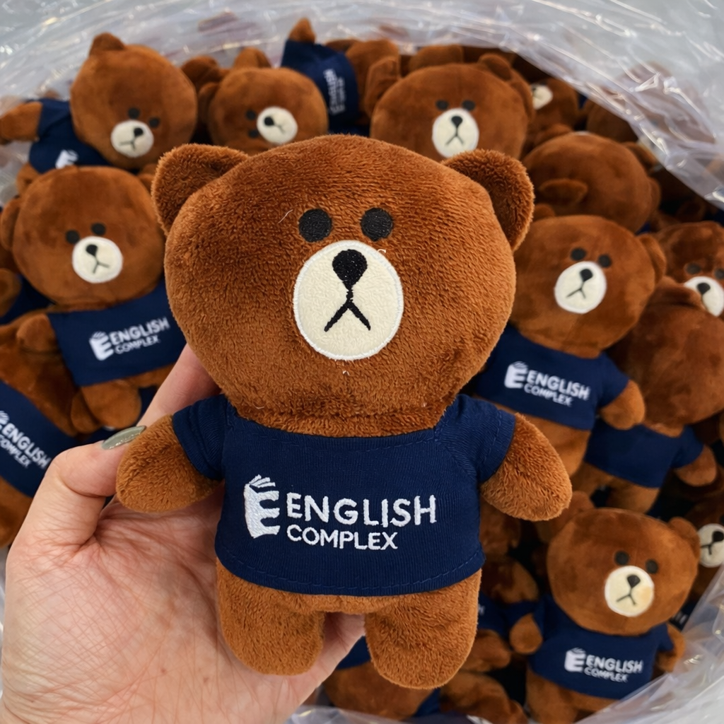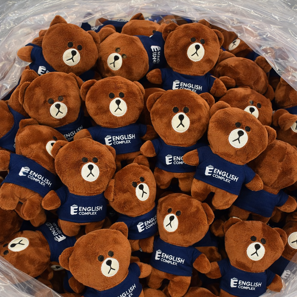 English Complex logo printed and embroidered teddy bears, manufactured by Viet Khue Production and Trading Co., Ltd, have become a popular and trusted promotional gift for English centers, schools, and educational institutions across Vietnam.